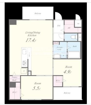 築年月 2024年9月  間取り 2LDK( LDK17.4畳/洋室5.5畳/洋室4.9畳 ) 専有面積 63.51m2
