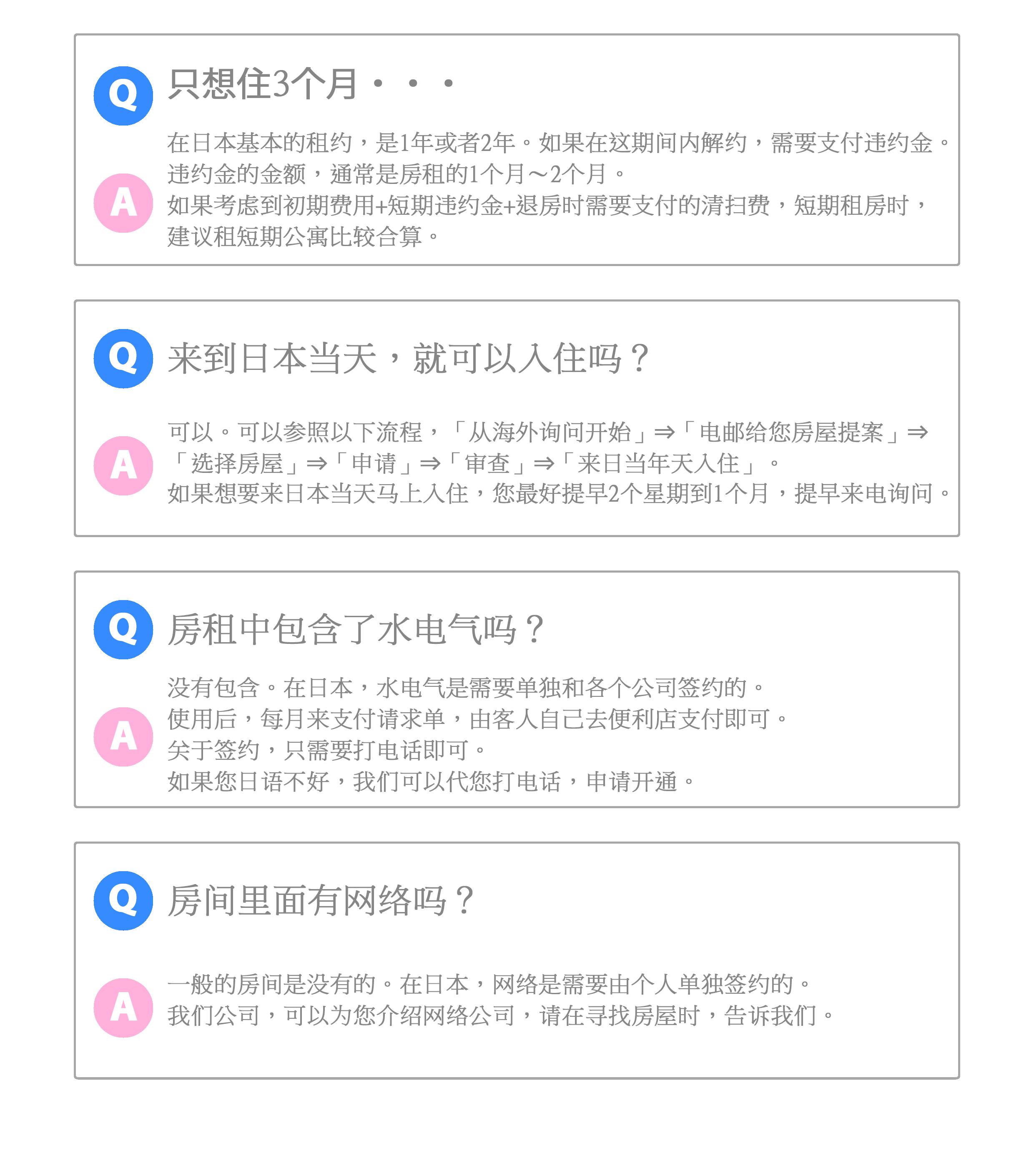 中文・韓文。除博多地區以外的其他地區,我們也可以為您介紹單身公寓和家族公寓。請随