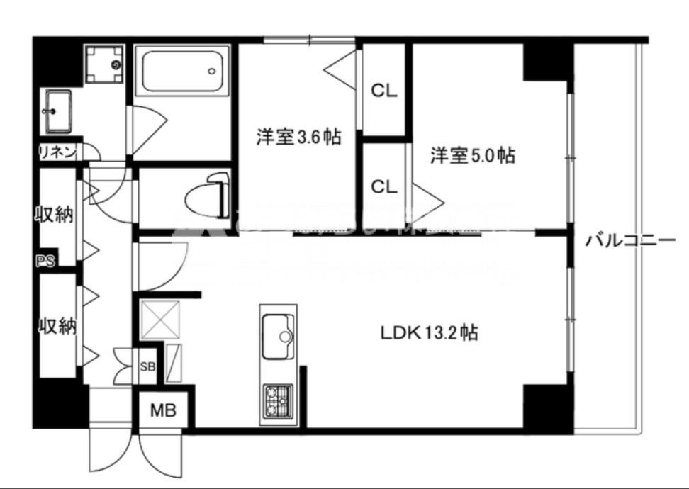 築年月 2025年1月  間取り 2LDK( LDK13.2畳/洋室5畳/洋室3.6畳 ) 専有面積 52.46m2