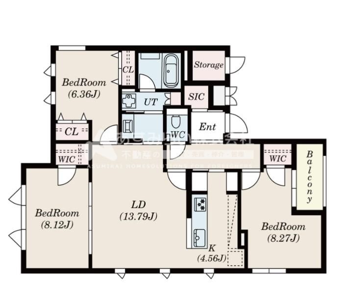 築年月 2024年12月  間取り 2LDK( LD13.79畳/K4.56畳/洋室8.12畳/洋室8.27畳/洋室6.36畳 ) 専有面積 73.96m2